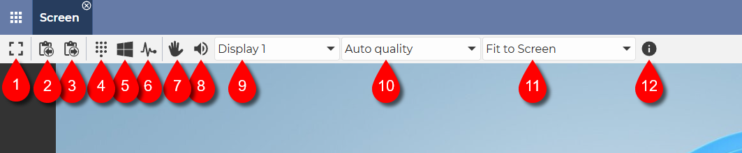 - Screen size β The screen size can be selected from the drop-down list. A value less than 100% means zoom out, a value greater than 100% means zoom in. Fit to screen adjusts the screen of the remote device to the size of the current window.