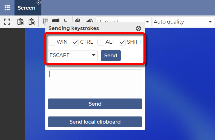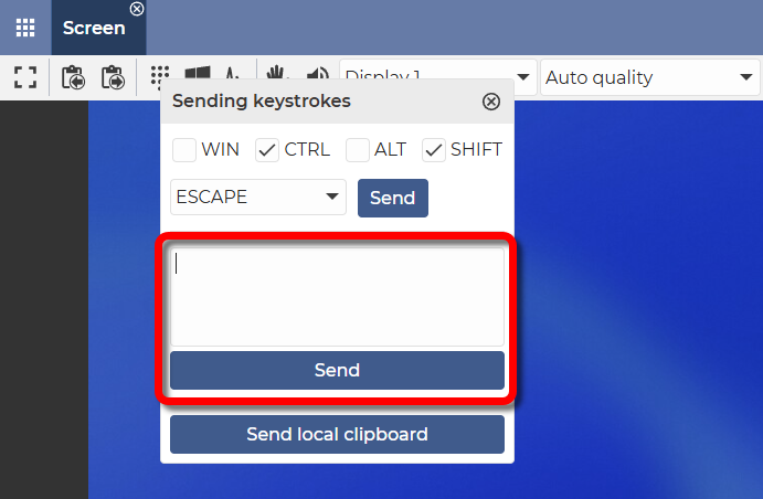 ℹ️ The Sending keystrokes feature, as the name indicates, allows you to send specific keystrokes to the remote device.