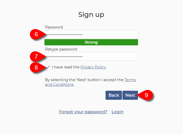 8. Read the Privacy Policy and, if you accept it, tick the checkbox.