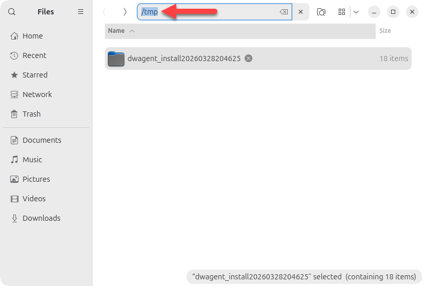 There you will see the temporary dwagent_install folder. For example, as shown in the screenshot: dwagent_install20260328204625
