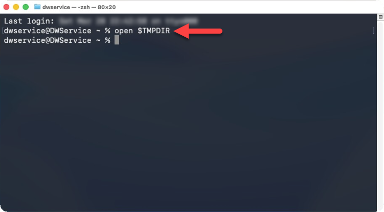 The execution of the open $TMPDIR command will open the temporary folder in a new window. As seen below: